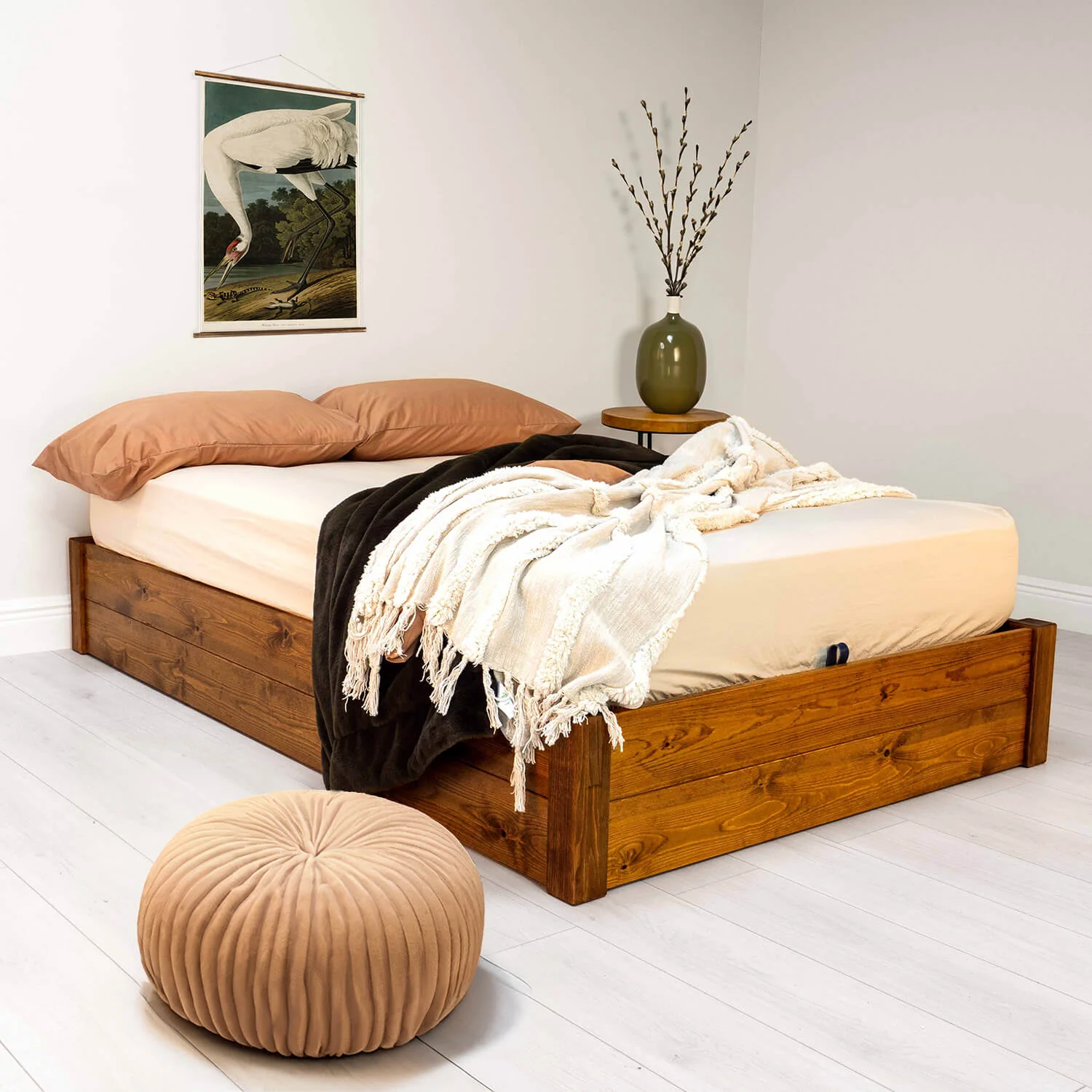 If you’re in the market for a space-saving bed frame without losing out on design, this no-headboard ottoman bed is the perfect fit.