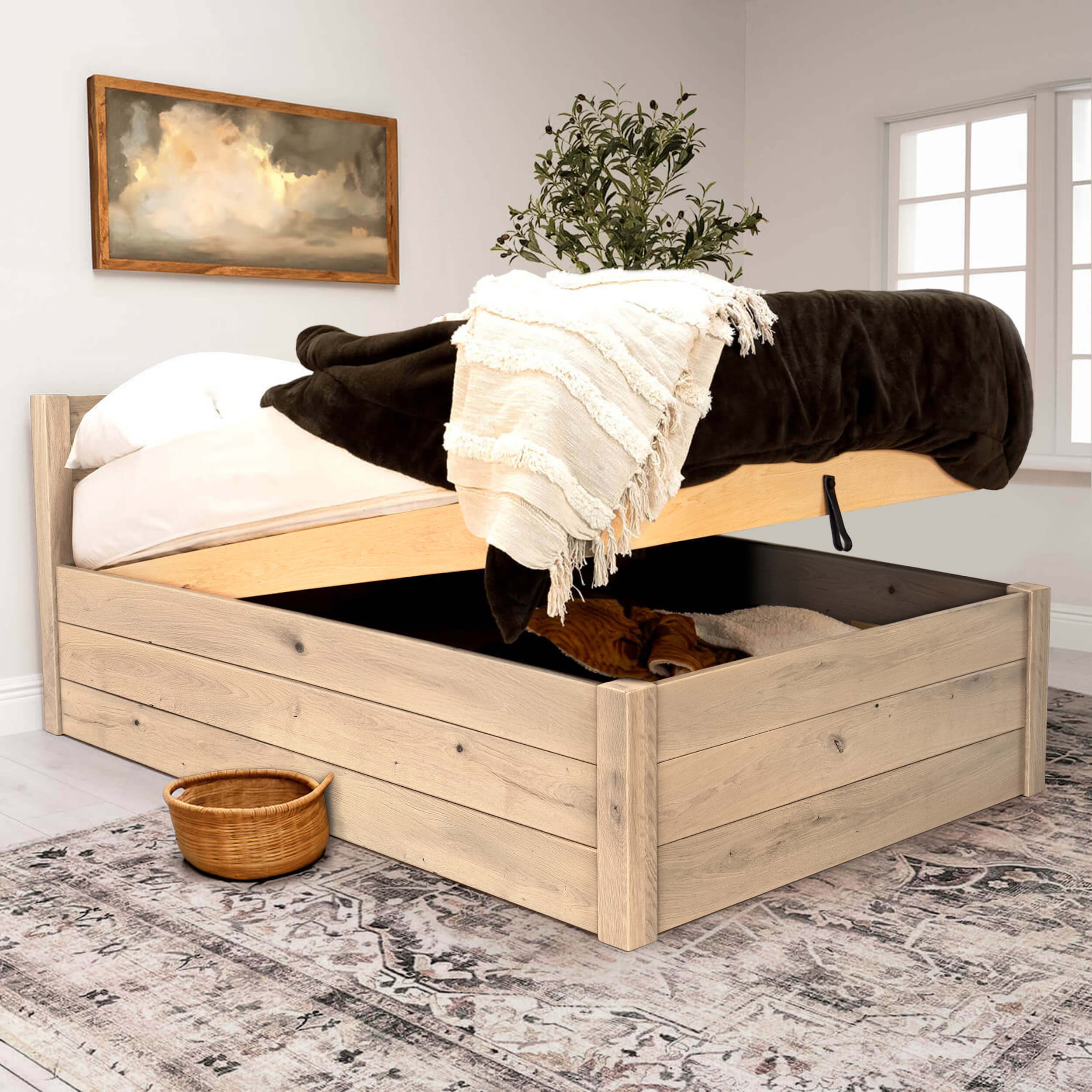 If you’re looking for a solid wood high bed frame with storage, we’ve got you covered with the deep ottoman bed.